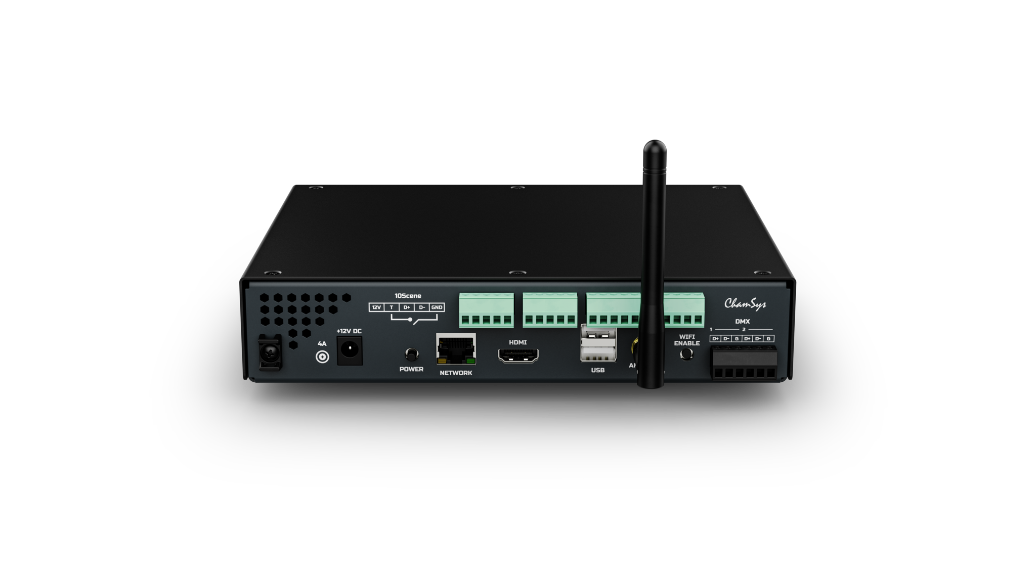 The QuickQ DIN can control up to 4 universes via Art-Net or sACN and also has two DMX outputs with RDM. Build easily installed lighting control systems with connectivity features such as built-in Wi-Fi for programming and remote control, and four 10Scene ports for connecting up to forty 10Scene wall plates.
