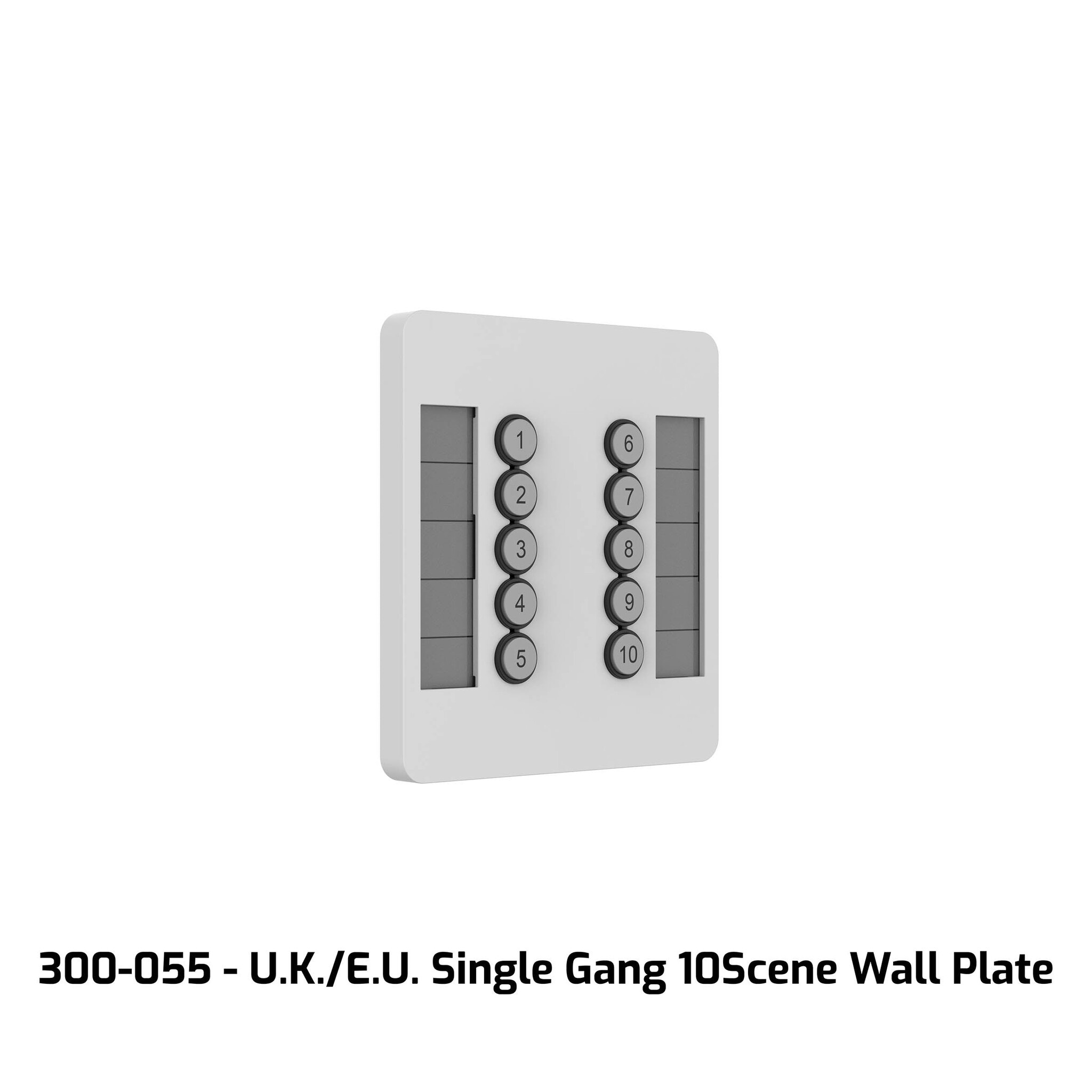 The 10Scene Wall Plate has ten 10Scene trigger buttons, with two-colour LED status indication.