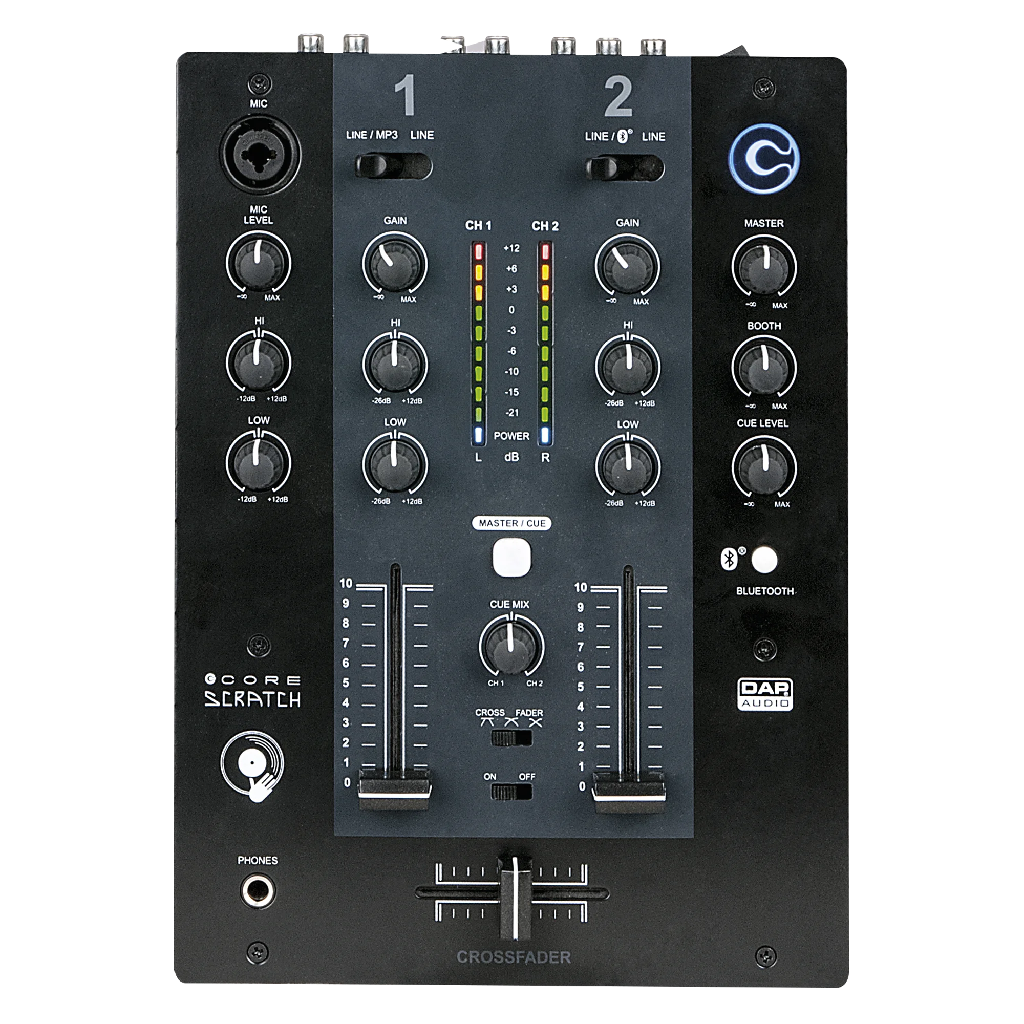 DAP Audio has created two DJ Mixer models which are available in 2, 3 and 4-channel versions. The basic and latest set of mixers are the CORE Scratch (2-Ch), Beat (3-ch) and Club (4 Ch). Next to its basic functionalities, each model has bluetooth playback, a VU channel indication and both a Master and Booth output with separate volume control.