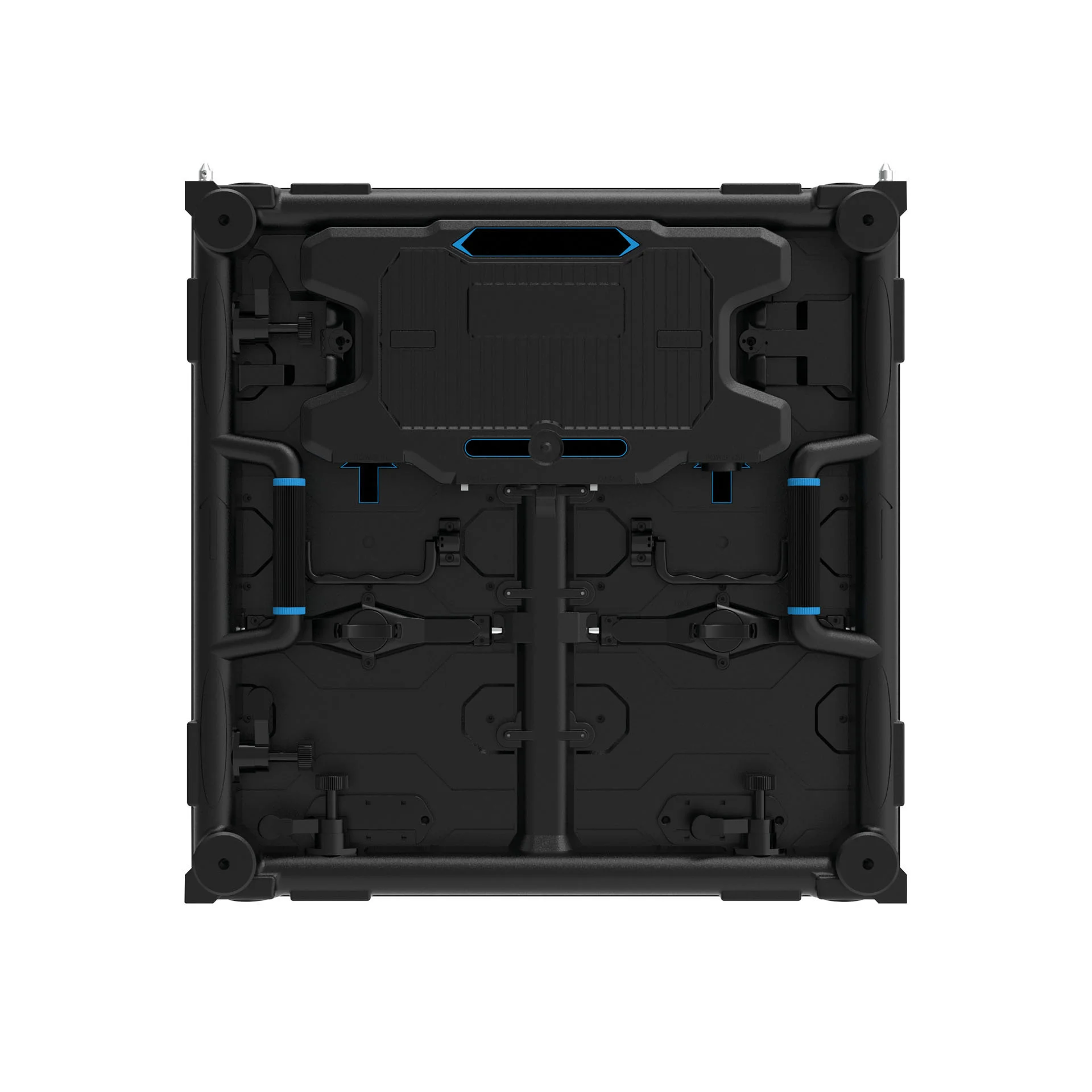 The DMT Premiere Series PS3.9 Blue Line is an IP54/IP65-certified LED panel with a pixel spacing of 3.9 mm, suitable for fixed and mobile indoor applications and for temporary outdoor applications (including rental). The flat 66 mm design and small pixel pitch are perfect for short-distance display (from 4 metres) and allow the panel to be used in a narrow setup, e.g. on medium-sized stages or corporate events. The Premiere Series PS3.9 Blue Line has a bright 5000-nits light output for a clearly visible image, even on a summer day. It is based on the same frame as the PS3.9-G2 Outdoor. Each component can be replaced via the front and back of the panel. This makes it possible to replace a damaged or defective part without dismantling the whole panel. Thanks to three different, separately available rigging bars, hanging and stacking is a piece of cake. With the DMT Stacking Bracket, a stacked screen can be safely and quickly attached to a Layher or truss construction. Power Pro and ProCat connectors ensure a safe and solid power and data connection. The built-in A5s PLUS receiver card works flawlessly with any NovaStar video processor.