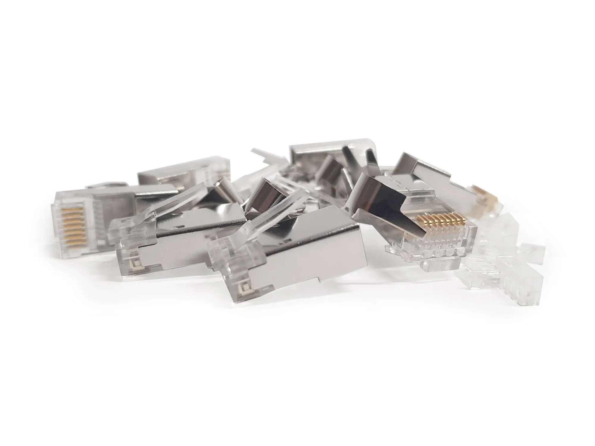 The RJ45 connector is used for internet purposes. RJ45 connectors are available in CAT5e and CAT6 versions. For both categories, shielded and unshielded versions are available. When the connector is attached to a shielded cable (FTP / S/FTP / SSTP), a shielded connector is used. When it comes to a (unshielded) UTP cable, an unshielded connector is used.