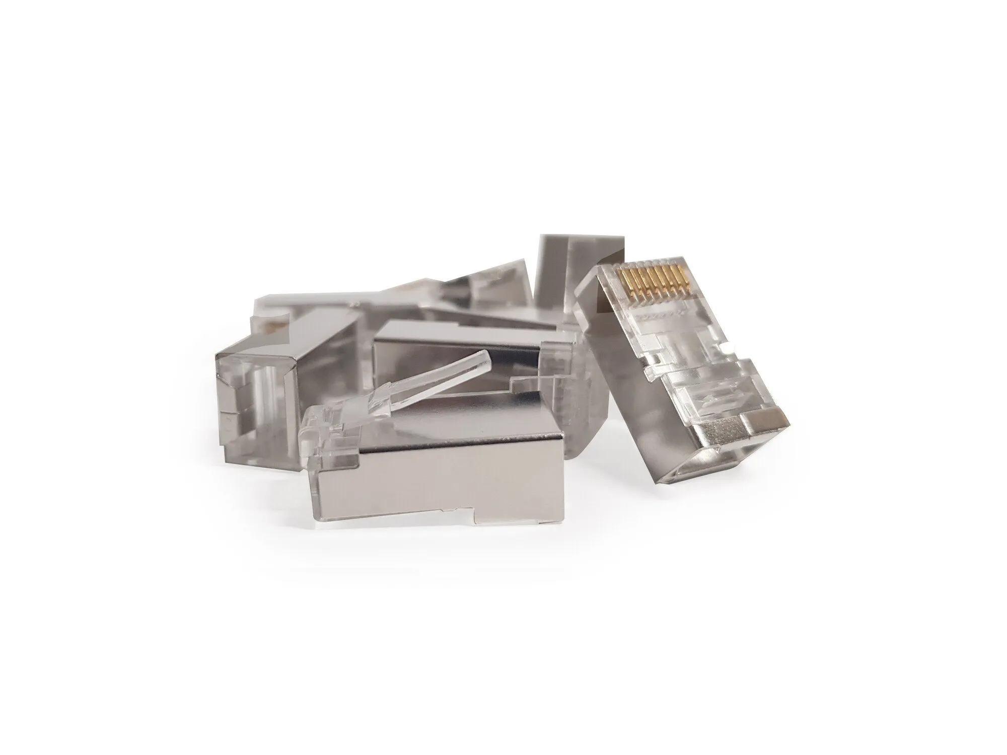 The RJ45 connector is used for internet purposes. RJ45 connectors are available in CAT5e and CAT6 versions. For both categories, shielded and unshielded versions are available. When the connector is attached to a shielded cable (FTP / S/FTP / SSTP), a shielded connector is used. When it comes to a (unshielded) UTP cable, an unshielded connector is used.