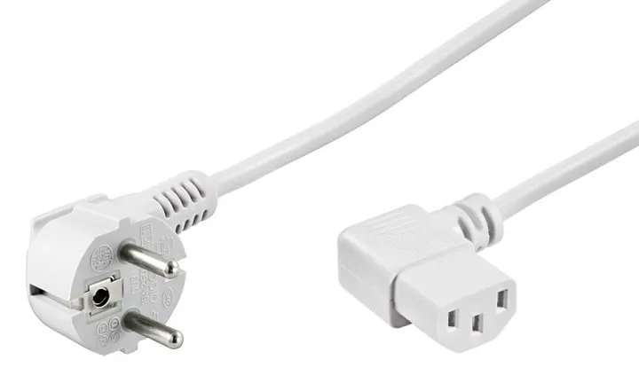 This schuko male to C13 female power cable is one of the most common power cables for connecting equipment, such as a computer, for example. Due to the angled schuko and C13 connectors, valuable space can be saved.