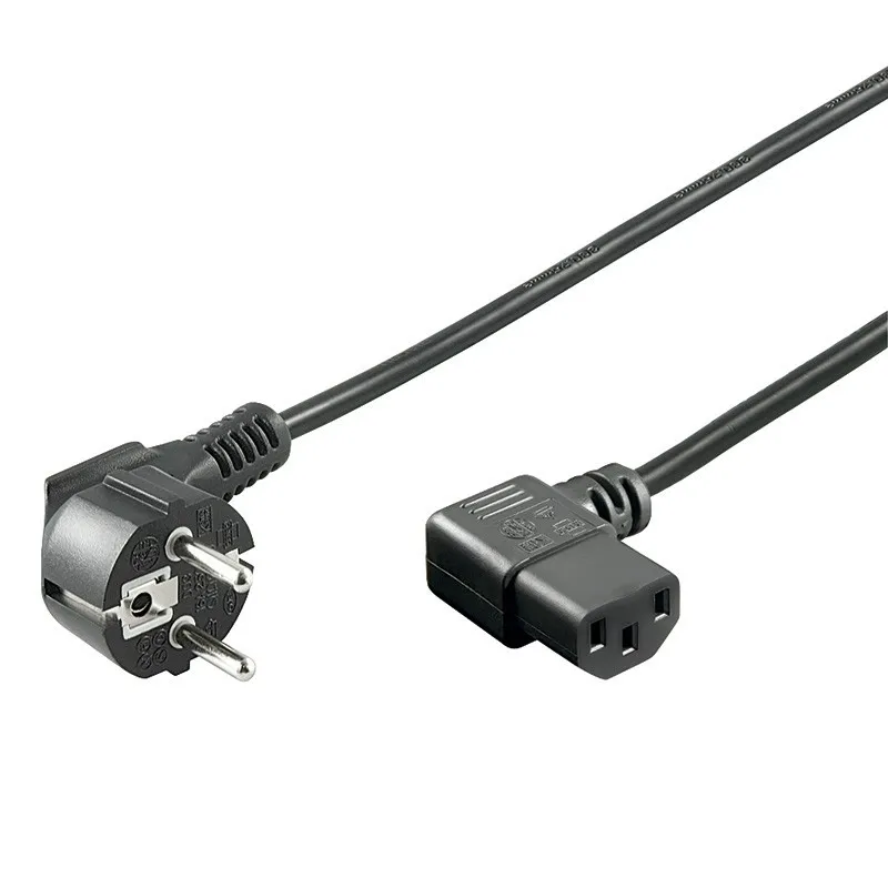 This schuko male to C13 female power cable is one of the most common power cables for connecting equipment, such as a computer, for example. Due to the angled schuko and C13 connectors, valuable space can be saved.