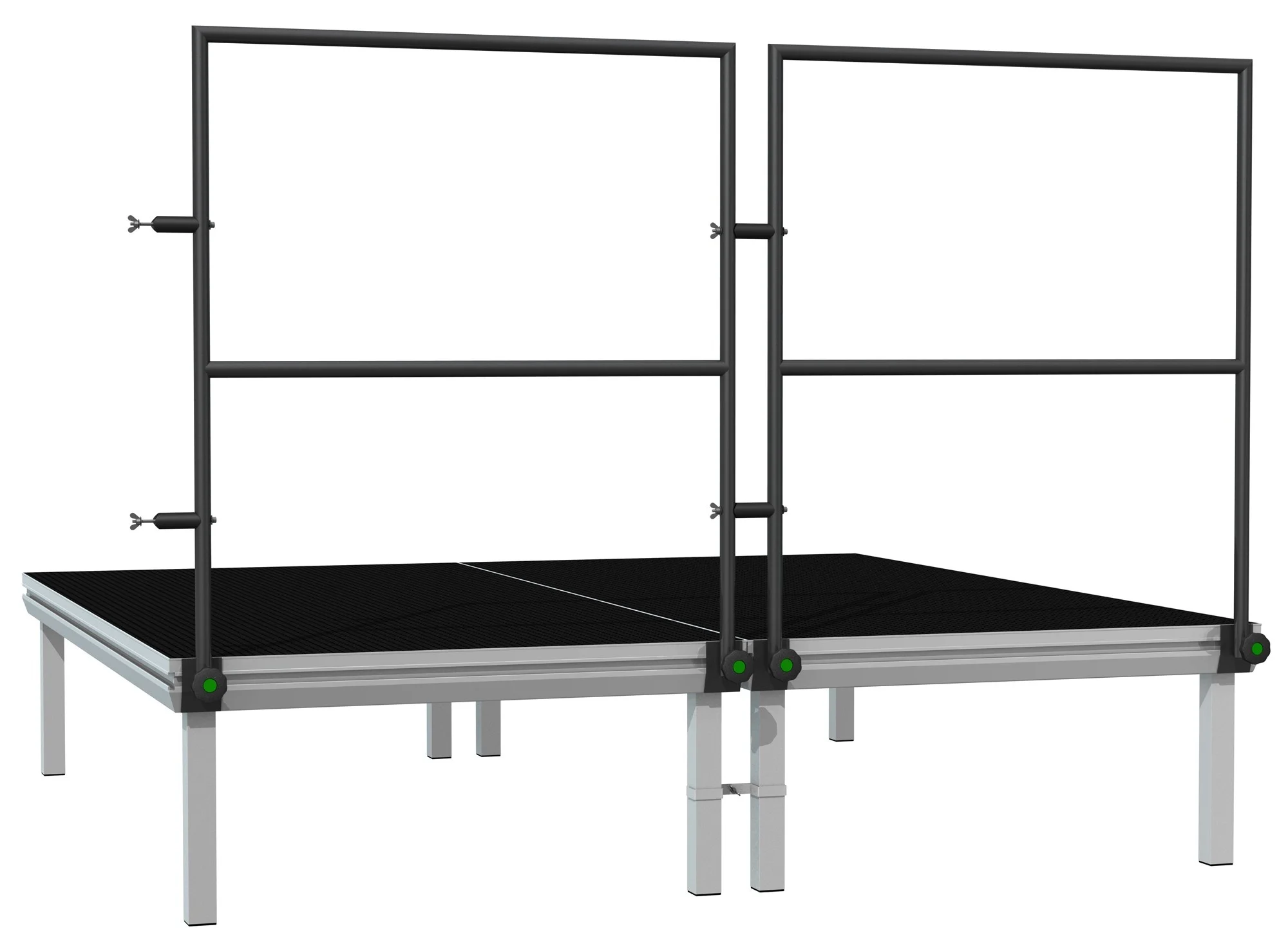 This handrail is designed to fit into the Deck750 profile. With 2 hand-screwed connectors, it is quick and easy to install. The handrails feature an additional lower crossbar to prevent smaller objects from sliding off the stage (e.g. flight cases). Adjacent railings can be linked together with a 2-point connection system for extra stability.