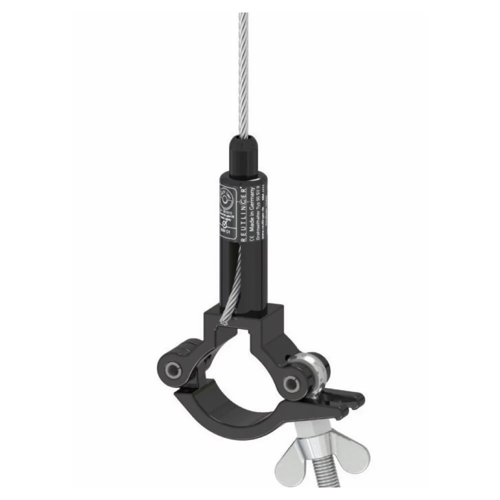 The application and advantages of these adjustable mounts on steel cable is enormous. Quickly and easily creating an adjustable suspension point in an exhibition hall, theatre or concert stage has always been difficult because security must be guaranteed. People often walk under these points, so safety must be paramount.