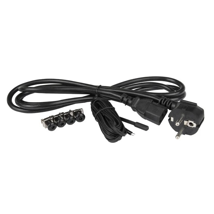 This Fan Unit comes with a power cable, mounting screws and thermostat.