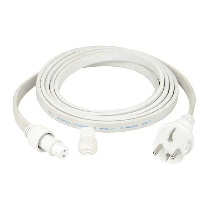 The power cable for Festoon Light E27 is a 3-m long dedicated power cable for the Festoon Light E27 series. It allows you to power the Festoon Light from a Schuko socket.