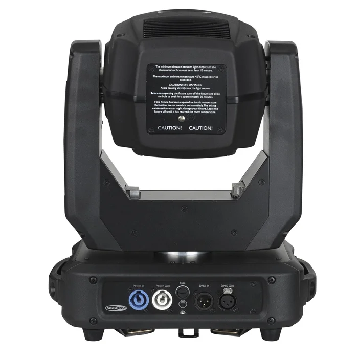 Technical specifications Light Source Type: Discharge Light Source Quantity: 1 Light Source Power: 150 W Luminous Flux (Total): 9200 lm CCT: 8600 K Beam Angle Max. (Circular): 3.5° Frost: Yes Focus: Motorised Control Mode: Auto / DMX / Manual / Master Slave / Sound DMX Channels: 10 / 14 Protocols: DMX Wireless: Optional Display: LCD Dimmer: 0-100 % Strobe: 0-20 Hz Shutter: Yes Prism 1: 16-facte Circulair Colour System: Colour Wheel Dichroic Colour Wheel 1: 14 + Open Gobo System: Metal Gobo Wheel 1: 17 + Open Pan: 540° Tilt: 270° Power Supply: 100-240 V AC 50-60 Hz Power Consumption: 255 W Power Connector In: Power Pro Blue Power Connector Out: Power Pro Grey DMX Connector: XLR 3P In/Out Length (mm): 325 mm Width (mm): 210 mm Height (mm): 420 mm Weight: 13 kg IP Rating: IP20 (indoor use only) Housing: Metal / Plastic Colour: Black