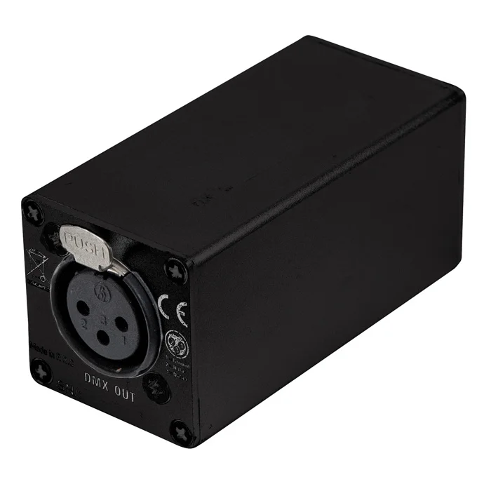 Technical specifications Supported Operating Systems: Mac / Windows Control Mode: Manual / MIDI / PC Software / Stand Alone DMX Channels: 512 Universes: 1 Power Supply: 5 VDC Power Consumption: 5 W Power Connector In: USB DMX Connector Out: XLR 3P Data Connector In: USB Length (mm): 75 mm Width (mm): 35 mm Height (mm): 35 mm Weight: 0.08 kg Housing: Metal Colour: Black