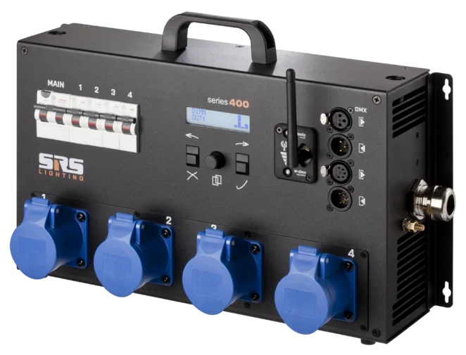 SRS Lighting | PDP40XX-8W-32 | Dimmer 4-channel | Wireless | Circuit breakers: RCBO | Main: RCD | DMX 3+5pin | 32A plug | Excluding connection panel