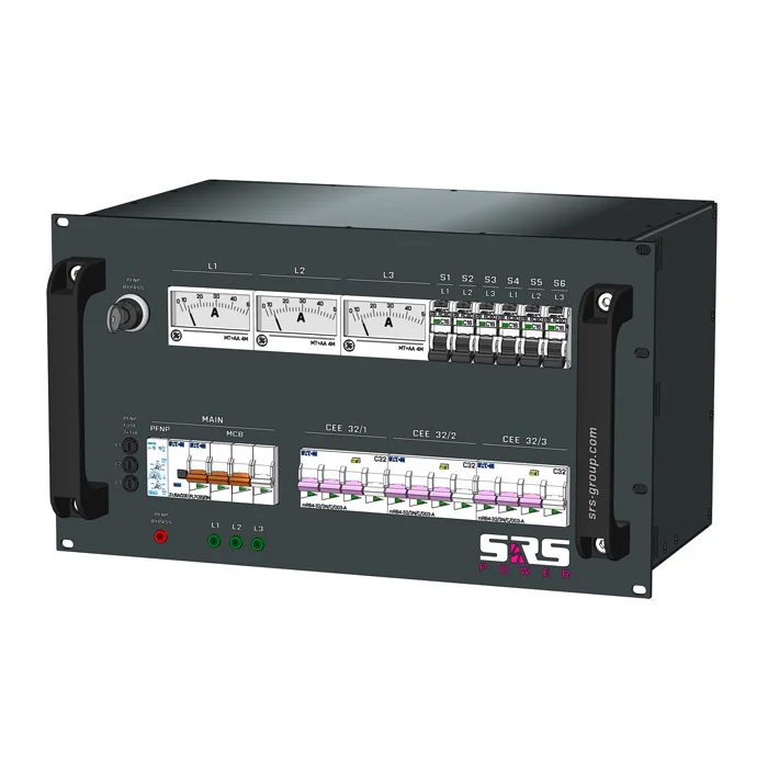 SRS Power | Power distributor 63A | 32A | Schuko | Analogue meter | Main MCB | RCBO