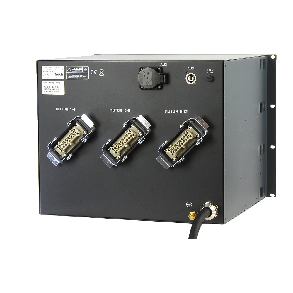 Type of control: Direct Voltage (DV), Input: 1x CEE32A/5p, Output: 3x Harting/16p, Number of channels: 12-channel