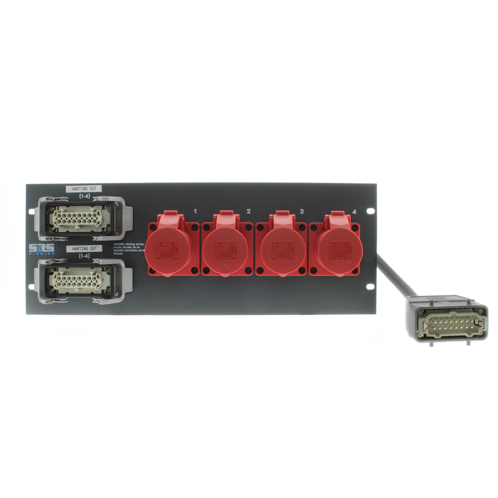 SRS Rigging* SRS Rigging | PP3H4C | 19-inch break-out | Input: 1x Harting | Output: 2x harting, 4x 16A CEE | Hoogte: 3HE