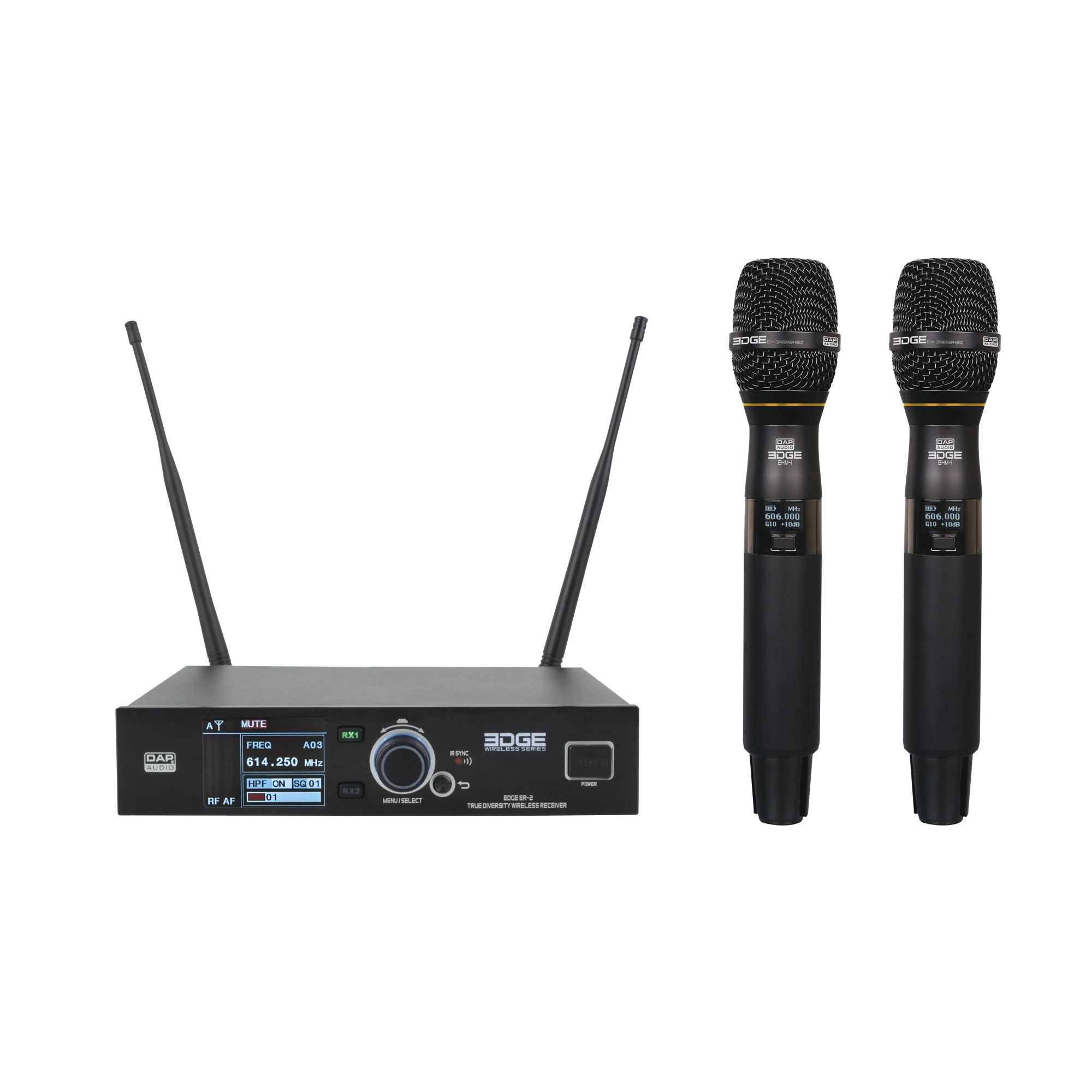 Le système EDGE EHS-2 de DAP est un système double microphones portable sans fil. Facile d’utilisation, il offre un son clair et pur, sans aucune interférence. Les deux microphones sont équipés d’une capsule à condensateur cardioïde de haute qualité, parfaitement adaptée pour le chant, les présentations, l’enseignement, le théâtre et la prise de parole lors d’événements en direct, rassemblements et conférences. Les écrans du récepteur et des microphones indiquent le niveau de la pile, ce qui est particulièrement utile. Le récepteur comprend un répartiteur d’antenne intégré, qui rend donc possibles la connexion en série des signaux d’antenne à plusieurs récepteurs et l’utilisation d’une série d’antennes pour chacun d’entre eux.