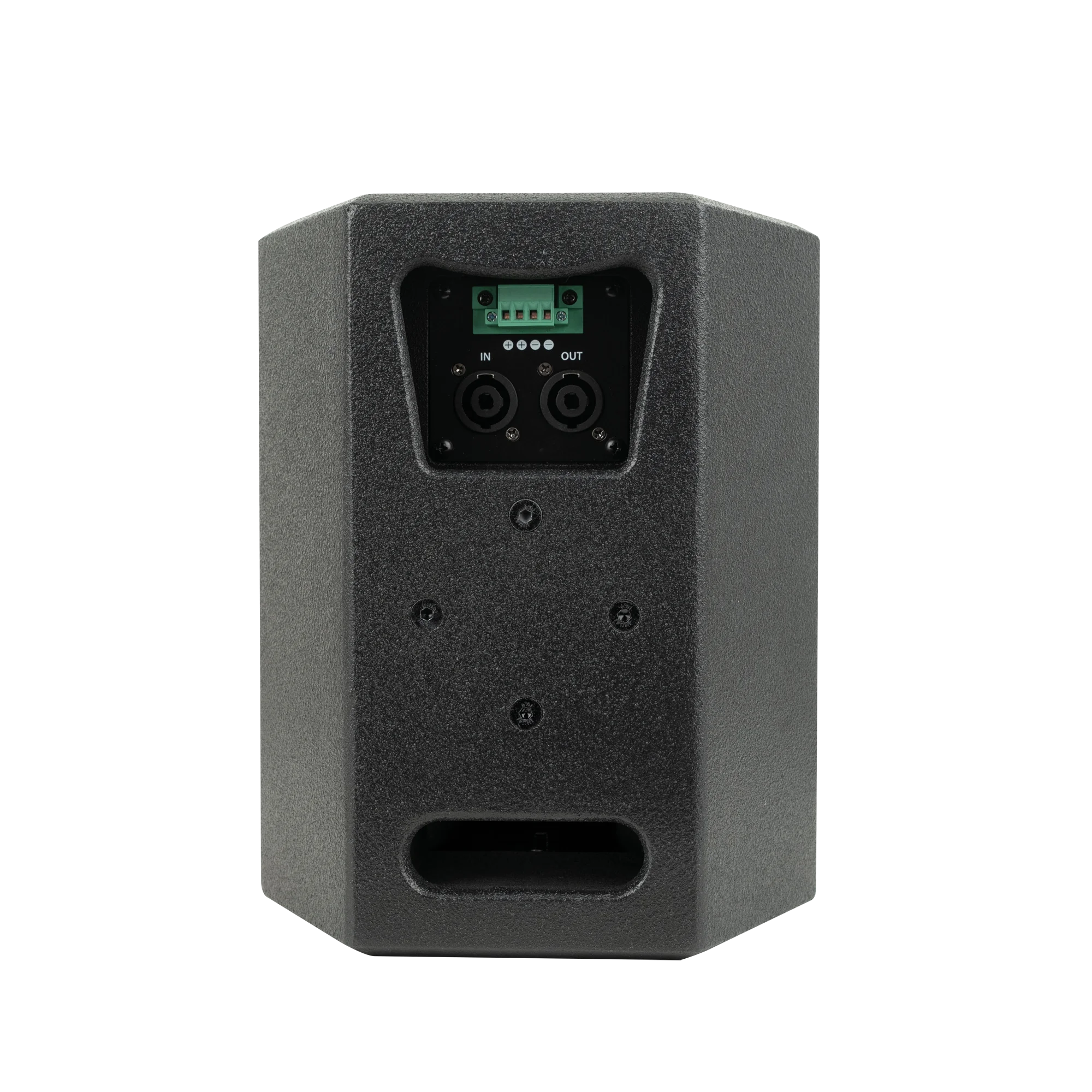 Caractéristiques techniques Puissance d'entrée RMS : 300 W Puissance d'entrée crête : 1200 W Connecteur d'entrée passif : Speaker Connector 4 pole / Terminal Système de haut-parleurs : 2 voies Sensibilité des haut-parleurs (1W/1m) : 96 dB Impédance des haut-parleurs : 8 Ω Max. SPL / m : 127 dB Réponse en fréquence minimum : 45 Hz Réponse en fréquence maximum : 20000 Hz Réponse en fréquence (-10dB) minimum : 45 Hz Réponse en fréquence (-10dB) maximum : 20000 Hz Diamètre du haut-parleur de grave : 10" Bobine mobile du haut-parleur de grave : 2.5" Diamètre du haut-parleur : 1" Bobine mobile du haut-parleur : 1,4" Rayonnement horizontal : 90° Rayonnement vertical : 60° Hauteur (mm) : 523 mm Largeur (mm) : 346 mm Longueur (mm) : 300 mm Matériau : Contreplaqué Poids : 14 kg Indice de protection : IP20 (utilisation en intérieur uniquement) Pavillon orientable : Oui