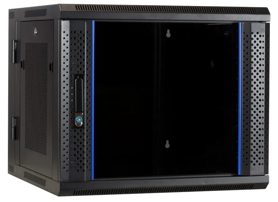 DSIT | Armoire murale 9U (basculante) avec porte en verre et parois latérales perforées 600x600x500mm (LxPxH)