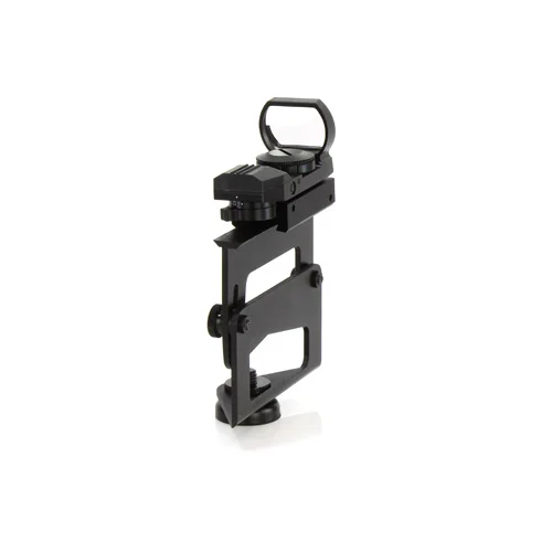 Le Reddot est équipé d'un support en aluminium robuste et réglable, de sorte que le Reddot se trouve à une distance suffisante du projecteur de poursuite. Ce support permet un réglage rapide et efficace de l'angle à corriger. Un aimant en néodinium d'une puissance de 40 kg maintient l'ensemble fermement en place. Le Reddot est entièrement en aluminium et ne fond donc pas sur votre projecteur de poursuite. La luminosité du marqueur (point, cercle, croix) est automatiquement adaptée à la lumière ambiante.