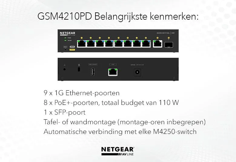 Netgear | GSM4210PD | commutateur réseau AV 10 ports | 8x 1G PoE+ 110W | 1x 1G | 1x port fibre SFP | Commutateur géré