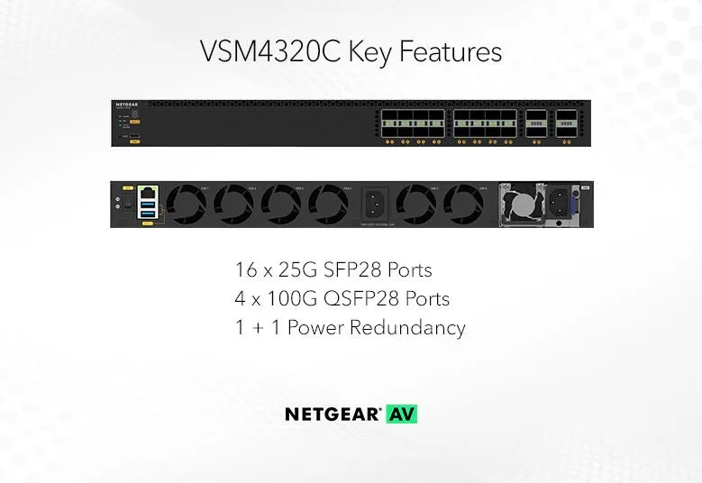 Netgear | VSM4320C | Commutateur réseau AV 20 ports | 16x SFP28 25G | 4x QSFP28 100G | Commutateur géré