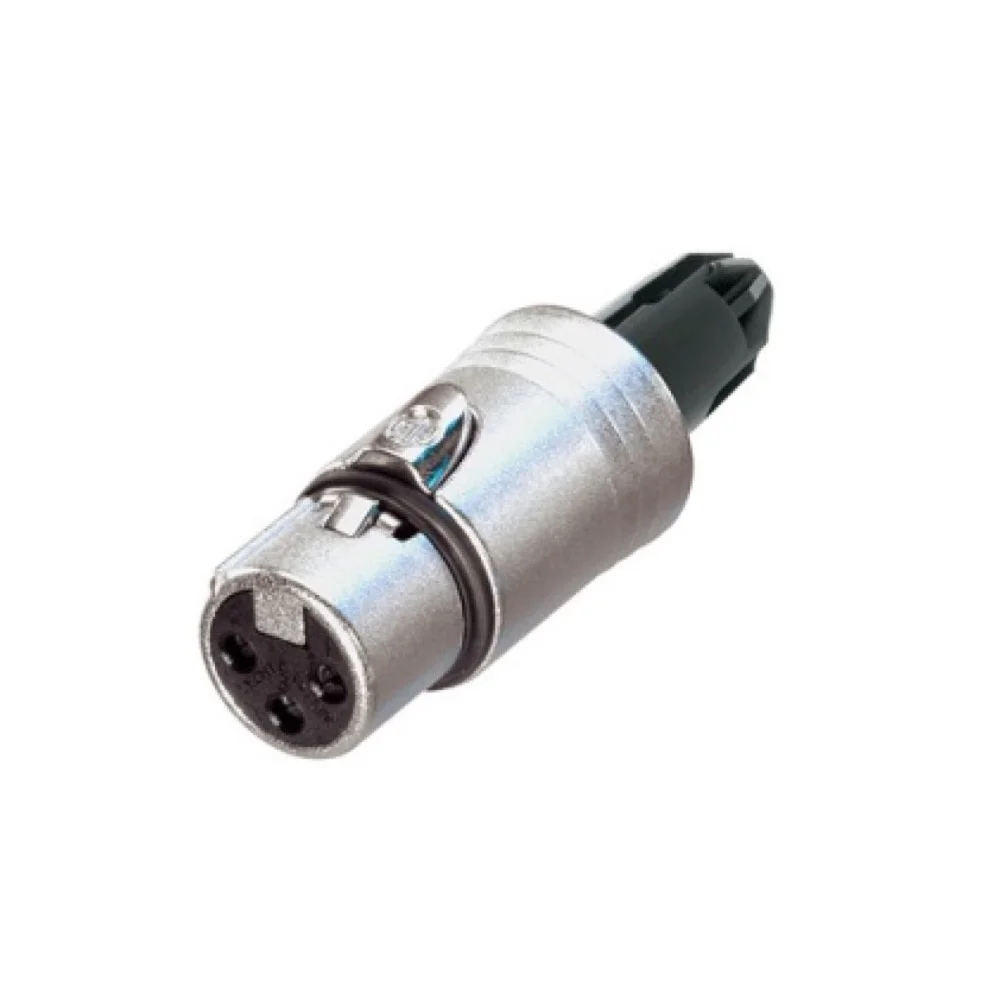 Connecteur de câble femelle à 3 broches avec boîtier en nickel et contacts argentés, sans passe-fil. Le passe-fil doit être commandé séparément.