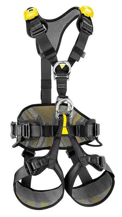Petzl Avao Bod ; Version européenne ; Utilisateur : 175-200cm ; Taille : 83-120cm ; Tour de cuisse : 50-65cm ; Couleur : noir/jaune monopoint ; Poids : 2170g.