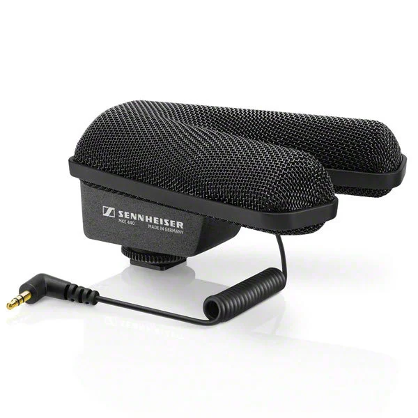 Sennheiser | 506258 | Microphone stéréo directionnel | MKE 440 | microphone stéréo pour appareil photo | condensateur | 2x super cardioïde | griffe porte-accessoires | câble avec prise jack 3,5 mm