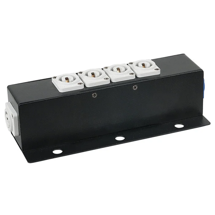 Le Powerport 5 est un distributeur de courant compact et pratique qui convertit une entrée powerCON en quatre sorties powerCON et une sortie link. Ce Powerport facilite la distribution de l'énergie dans votre truss.