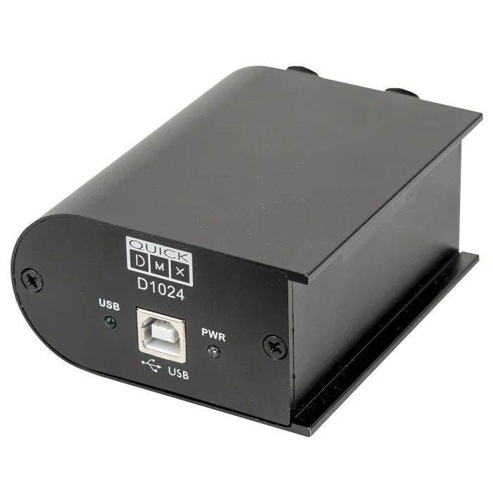 Grâce à l’interface « D1024 », il est possible d’utiliser le logiciel Quick DMX pour gérer l’ensemble des 1 024 canaux DMX sans aucune restriction. Cette interface peut sauvegarder une scène ou une poursuite pour chacun des canaux. Cette scène ou cette poursuite sera reproduite en cas de déconnexion avec l’ordinateur. Veuillez noter que Quick DMX D1024 ne fonctionne qu’avec le logiciel Quick DMX. Pour obtenir de l’aide, vous pouvez visiter le forum technique de Quick DMX : http://bit.ly/X4bDcv. Des tutoriels sont disponibles à cette adresse : http://bit.ly/1oHfq9m