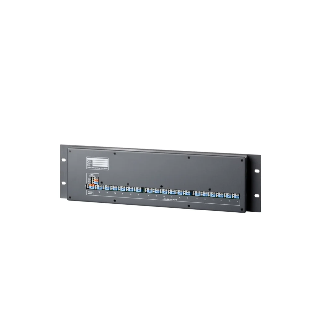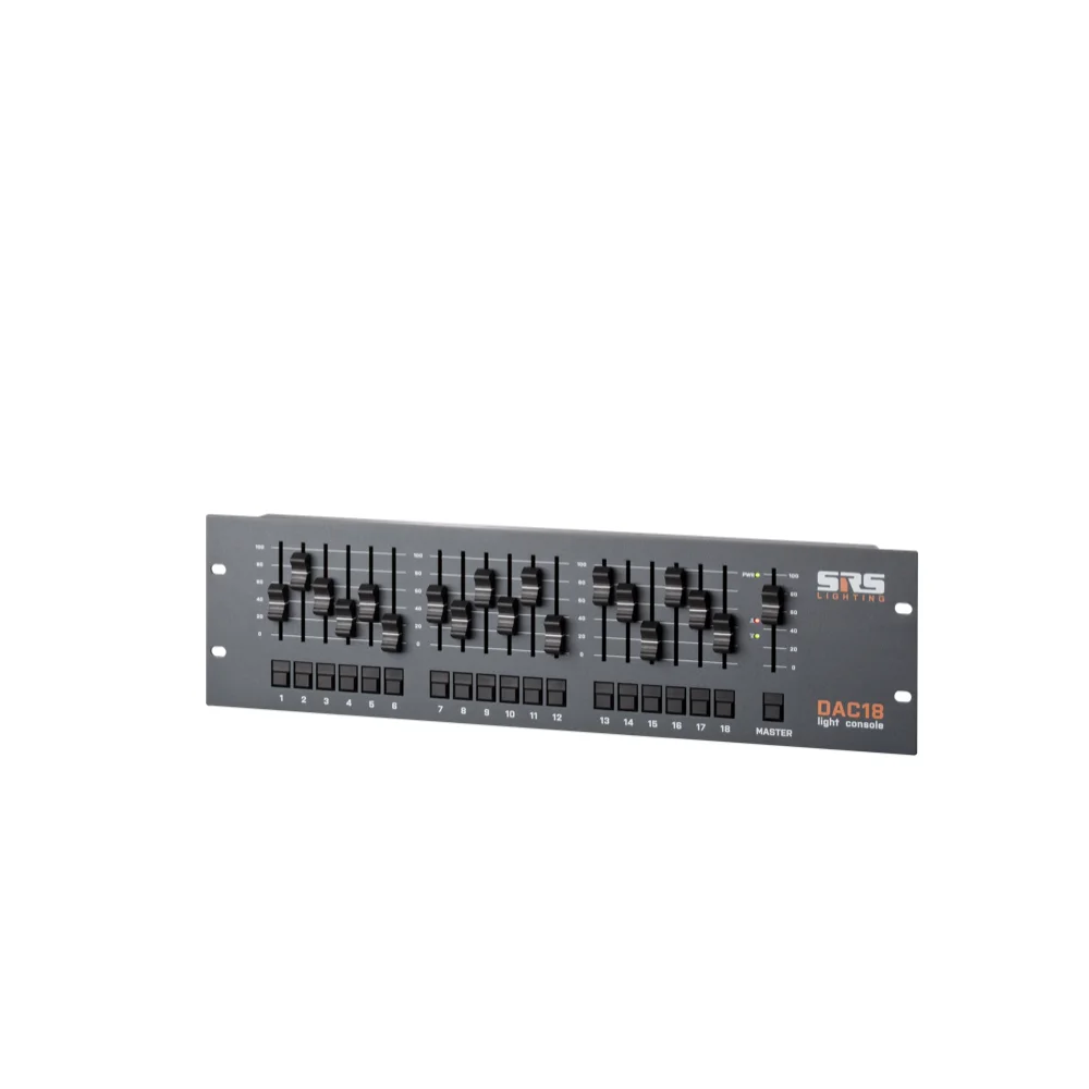 SRS Lighting* SRS Lighting | Panneau de contrôle 12 ou 18 canaux | 19 pouces 3U | Console DMX+ 0/+10V | Sortie DMX : 3+5 broches | Alimentation externe incluse