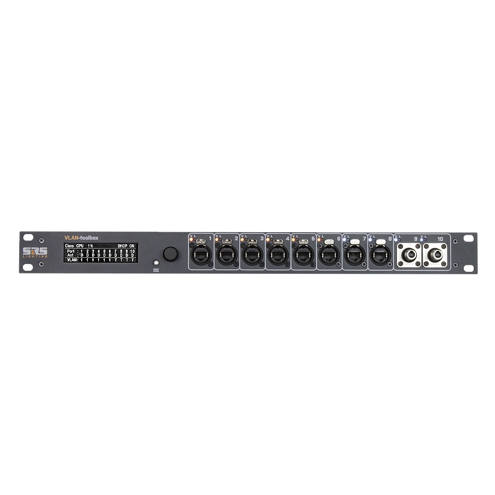 SRS Lighting | VLAN toolbox 8-2 | Switch Cisco géré 8 ports | Interface utilisateur à l'écran | 8x etherCON 1GB-S | PoE+ | 19Inch 1U