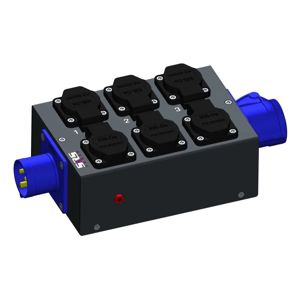 SRS Power | Boîtier de connexion CEE16A 3p | MSB CEE16/3T-6SC-LED | CEE16/3+THRU | 6x Schuko | Voltage LED