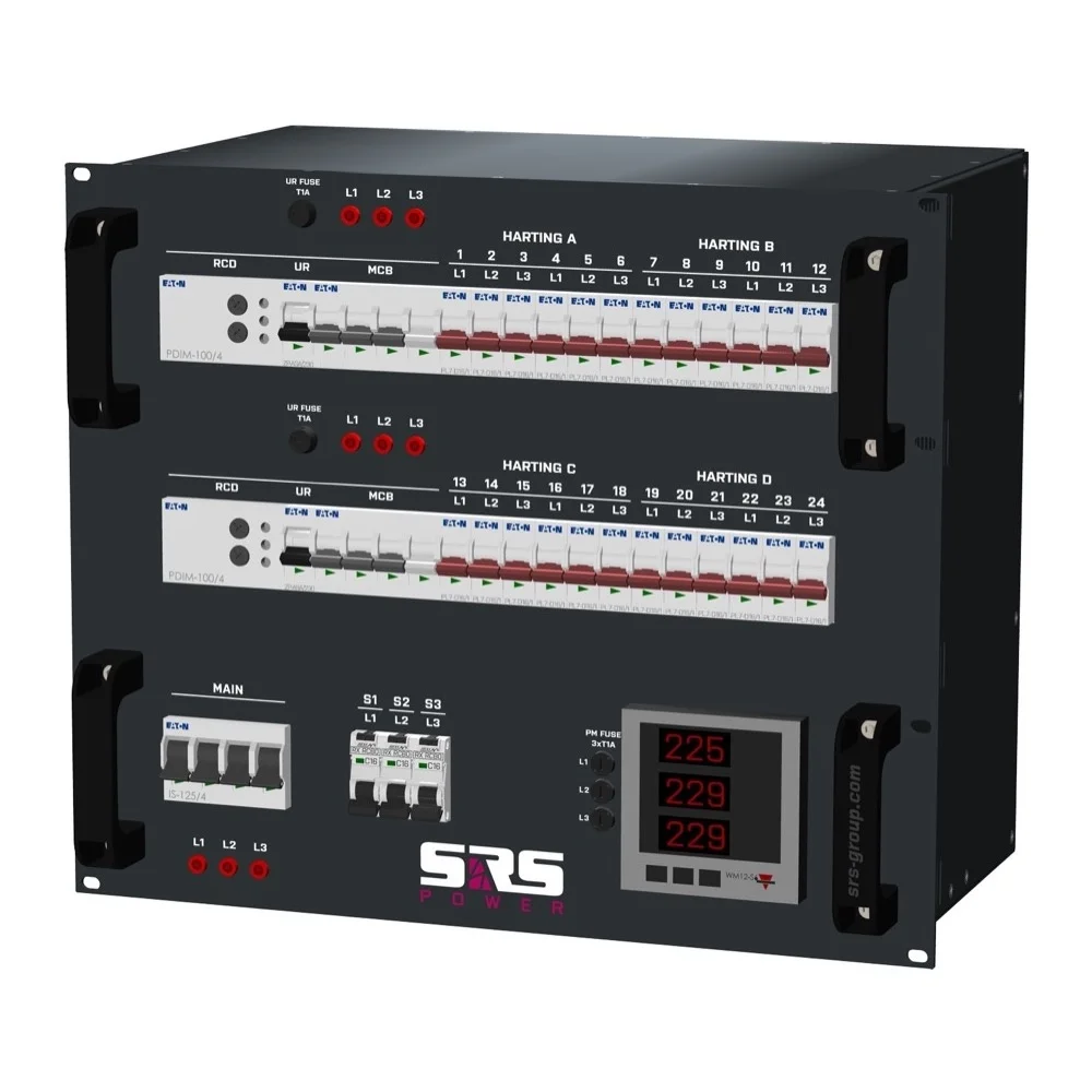 SRS Power* SRS Power | Distributeur de courant 125A | Harting 16p | Schuko | Compteur numérique | Interrupteur principal | MCB | RCD réglable | RCBO