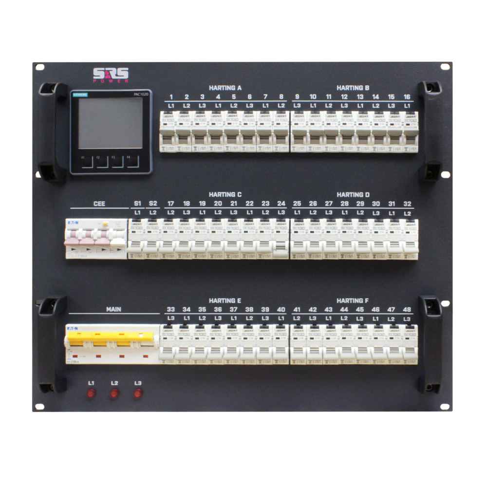 SRS Power | PDU1251C6H2SxPR | Stroomverdeler 125A | Input 125A CEE | Output: 1x 32A CEE | 6x Harting 16-8 | 2x Shuko | 51xRCBO | 9U