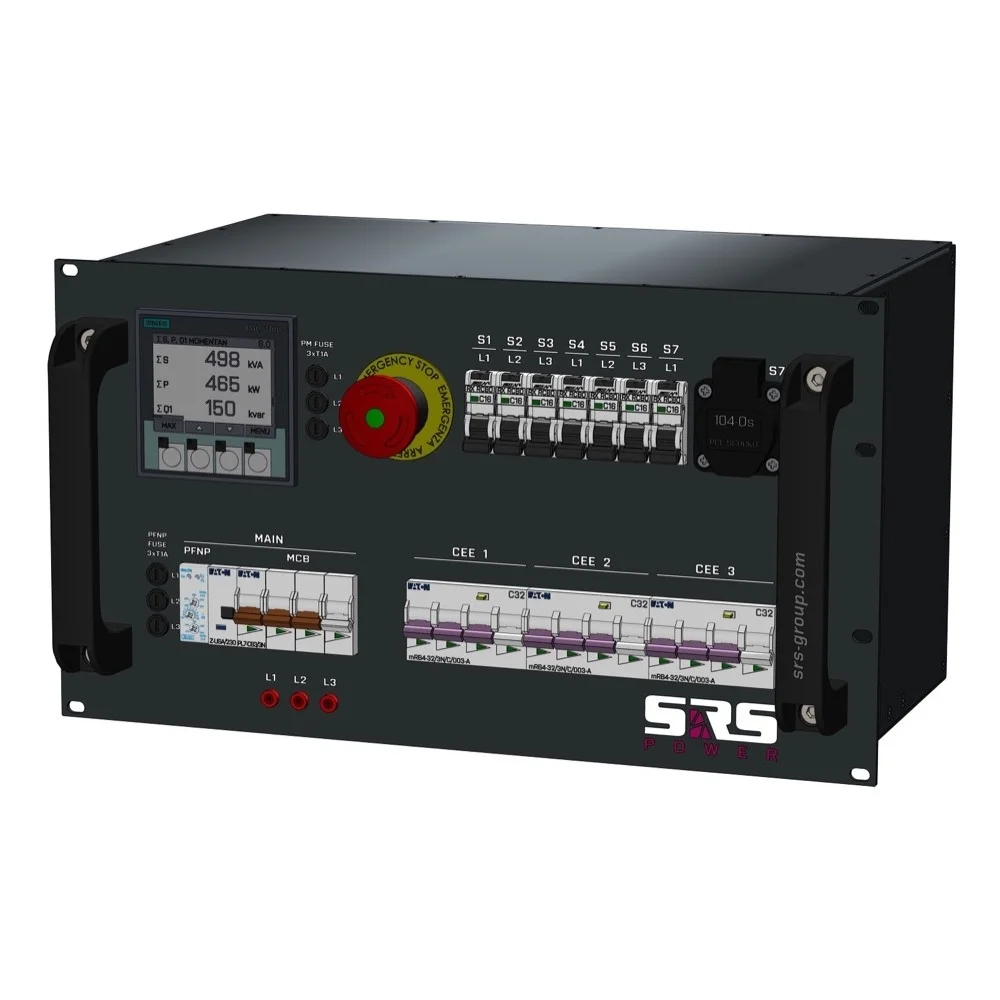 SRS Power* SRS Power | Tableau de distribution d'énergie 63A | 32A | Schuko | Arrêt d'urgence | MCB principal | RCBO