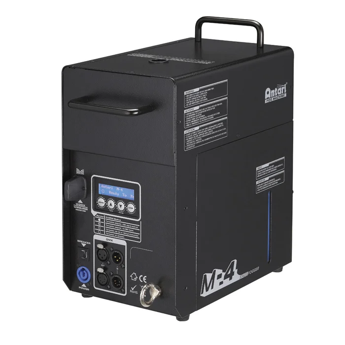 De Antari M-4 is een professionele rechtopstaande rookmachine met een krachtige uitvoer. Het kan zonder problemen horizontaal en verticaal worden gebruikt. Het mechanische ontwerp van M-4 is gemaakt voor verhuur, omdat de vloeistof tank in een los compartiment zit in de machine. Dit is ideaal voor transport, aangezien er niet op de positie hoeft te worden gelet.