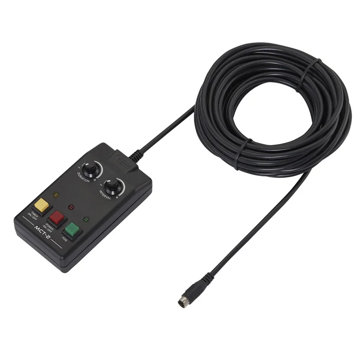 De Antari MCT-2 Timer Afstandsbediening is een optionele accessoire voor het bedienen van je Antari MB-1 tot een afstand van 7,5 meter. Hij beschikt over zowel een handmatige aan- / uit-schakelaar als een timer waarmee je de interval en tijdsduur kunt bepalen.