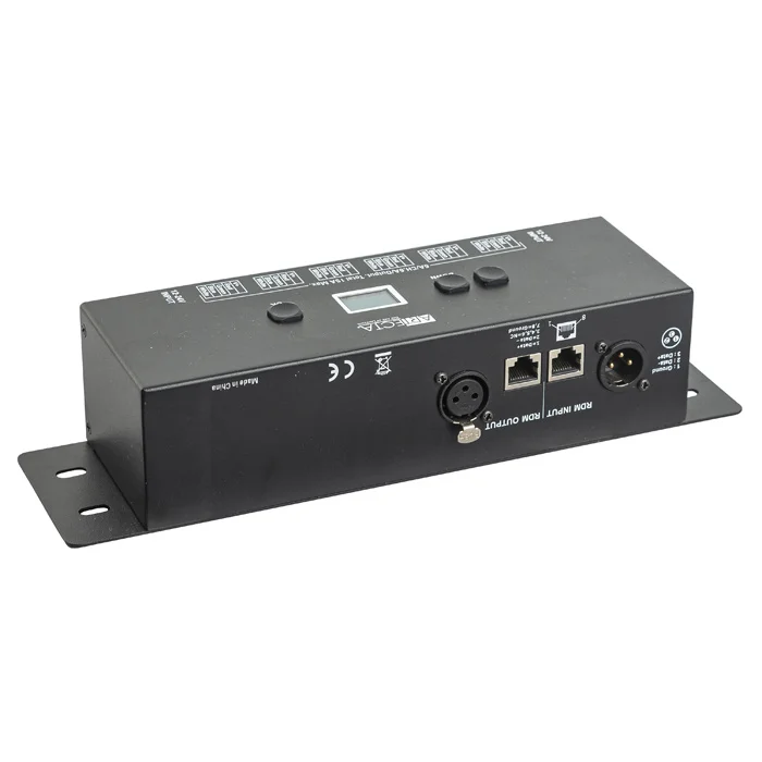 Technische specificaties Control mode: DMX DMX kanalen: 48 Protocollen: DMX Ingangssvoltage: 12-24 VDC Uitgangsvoltage: 12-24 VDC Uitgangsvermogen maximaal (A): 15 A Lengte (mm): 286 mm Hoogte (mm): 90 mm Breedte (mm): 62 mm IP waarde: IP20 (indoor use only)