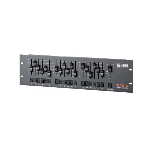 SRS Lighting | 6-, 12- of 18-kanaals bedieningspaneel | 19-inch 3U | DMX+ 0/+10V console | DMX out: WAGO