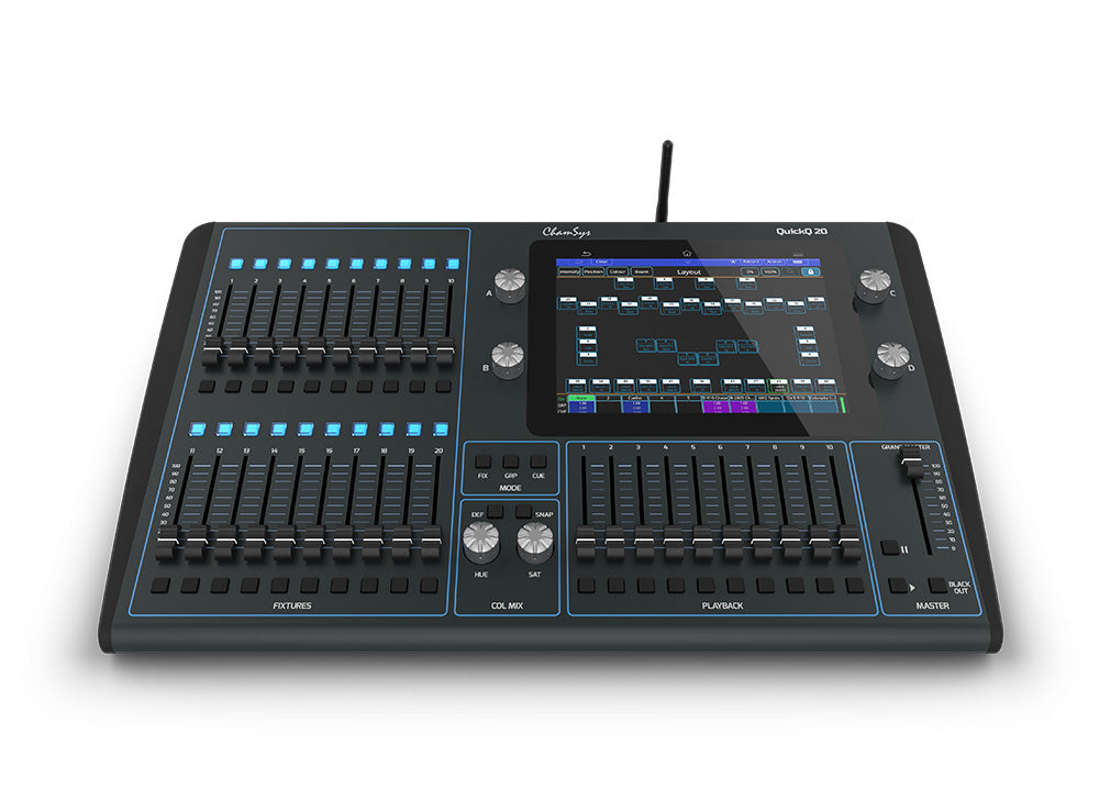De QuickQ 20 maakt deel uit van de ChamSys QuickQ-reeks van gebruiksvriendelijke en betaalbare lichtregelconsoles. De QuickQ 20 is de perfecte keuze voor dimmers, LED kleurmenging en bewegende armaturen. De console heeft een groot 9,7 inch touchscreen met een smartphone-achtige interface voor het instellen, programmeren en afspelen van je show.