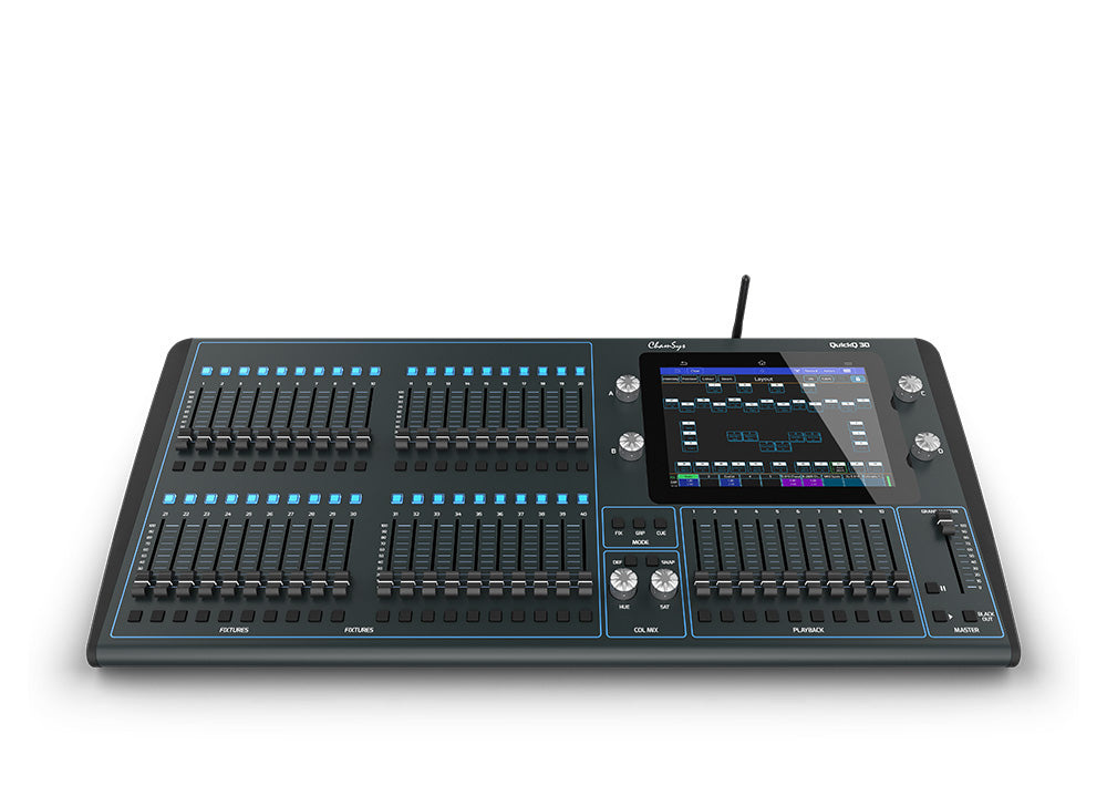 De QuickQ 30 maakt deel uit van de ChamSys QuickQ-reeks van gebruiksvriendelijke en betaalbare lichtregelconsoles. De QuickQ 30 is de perfecte keuzeconsole voor de bediening van dimmers, LED-kleurmengsystemen en bewegende armaturen. De console heeft een groot 9,7 inch touchscreen met een smartphone-achtige interface voor het instellen, programmeren en afspelen van je show.