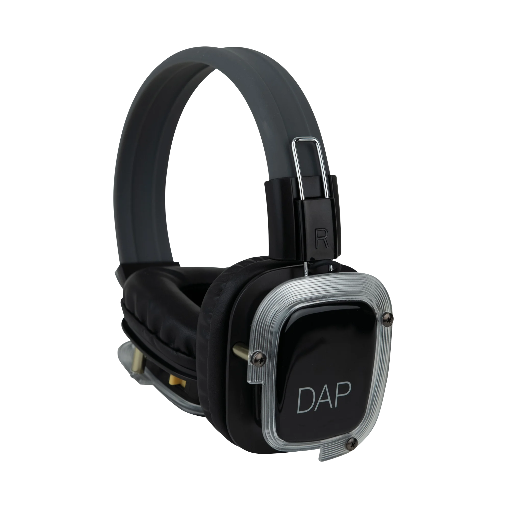 De schelpen van de hoofdtelefoon zijn voorzien van RGB LED's die het geselecteerde kanaal door middel van een kleur aangeven. De kleur kan worden overruled door het DAP Keypad voor LED-bediening van Silent Disco Hoofdtelefoons dat op de zender kan worden aangesloten. De schelpen kunnen worden ingeklapt om opbergruimte te besparen. De interne Li-ion batterij van 500 mAh levert tot 8 uur stroom, afhankelijk van het volume. Hij kan in 2,5 uur worden opgeladen via de meegeleverde kabel en een 5V USB-voeding, of met de speciale DAP Oplader voor Silent Disco Hoofdtelefoon die tot 16 hoofdtelefoons tegelijk kan opladen.