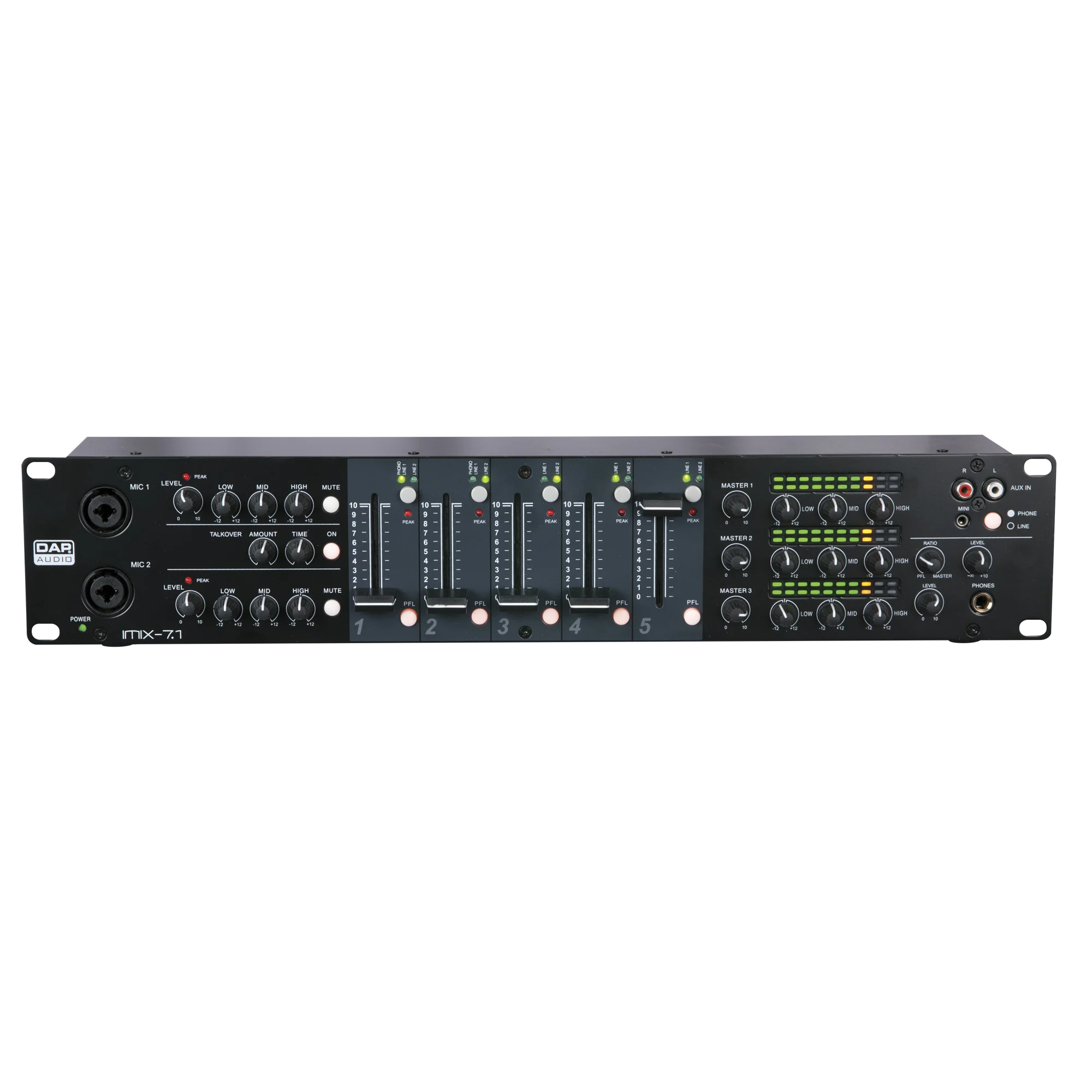 De DAP IMIX-7.1 is een 7-kanaals installatiemixer met 3 masteruitgangen. Hierdoor kun je een goede mix maken tussen de verschillende ingangen en het master volume. Je hebt hierbij tevens de mogelijkheid om bij iedere uitgang de EQ-instellingen aan te passen. In totaal kun je twee dynamische microfoons en vijf audioapparaten aansluiten, waarbij de microfoon ingangen zijn uitgerust met een 3-bands EQ regelaar.