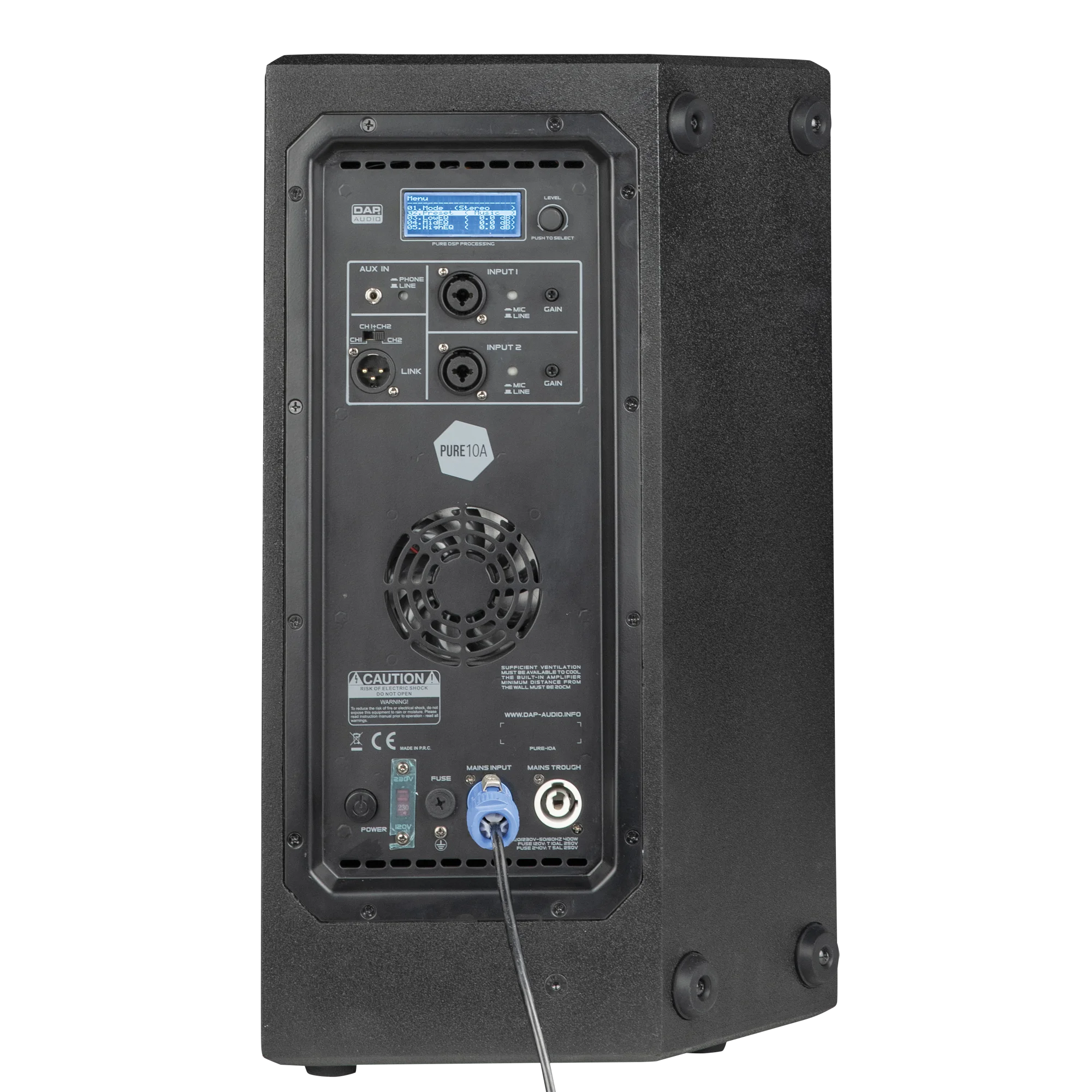 De DAP Pure-10A is een veelzijdige 10-inch actieve full-range speaker met een piekvermogen tot 260 watt. Zijn multifunctionele ontwerp geeft je de mogelijkheid om hem te gebruiken als PA speaker, topkast of vloermonitor. Afhankelijk van de toepassing kun je kiezen uit vijf DSP presets (Music, Live, Voice, DJ en Monitor). Je kunt de 24-bit DSP ook instellen naar persoonlijke voorkeur. Zo kun je verschillende instellingen aanpassen, waaronder EQ, delay, limit en phase. Dit kan eenvoudig door middel van het LCD-scherm in combinatie met de draai-druk knoppen.