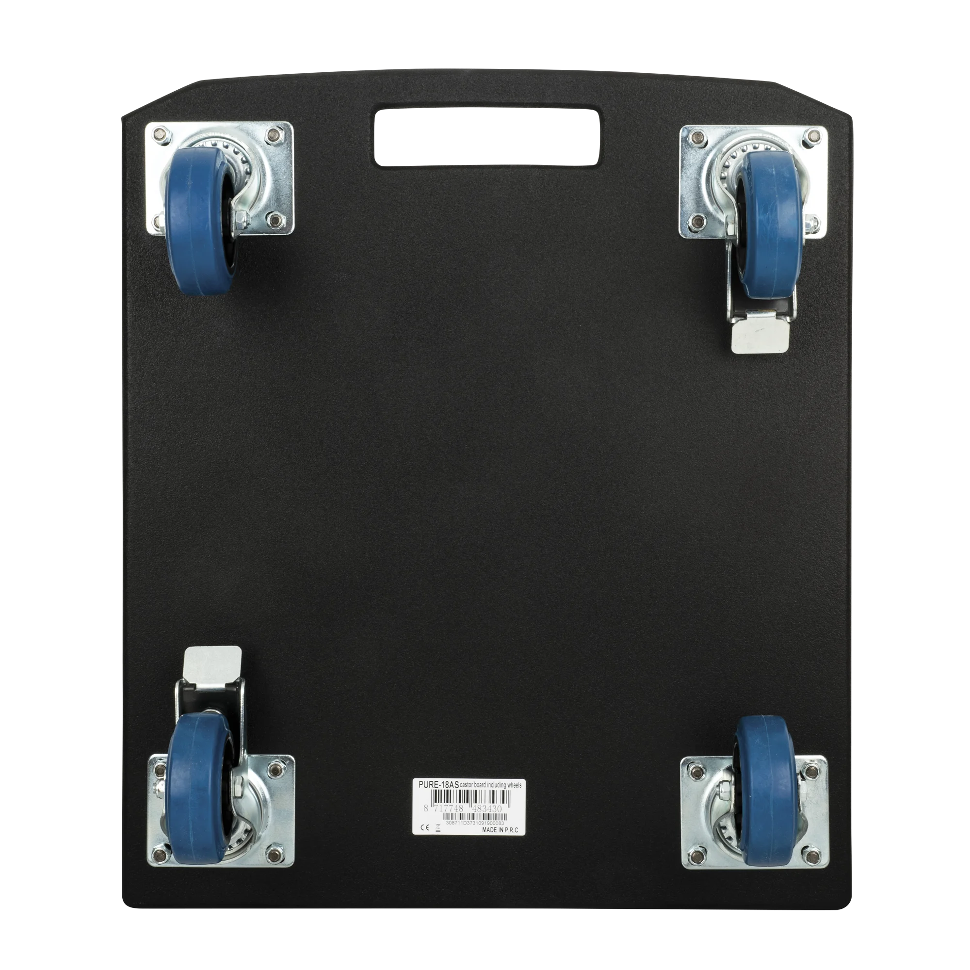 Om het transport van de Pure-18(A)S eenvoudig te maken, biedt DAP het bijpassende castorboard aan. Het castorboard is uitgerust met 4 stuks 100mm Blue wheels (2 zwenkwielen, 2 inclusief rem) en is voorbereid om de 18(A)S perfect te ondersteunen.