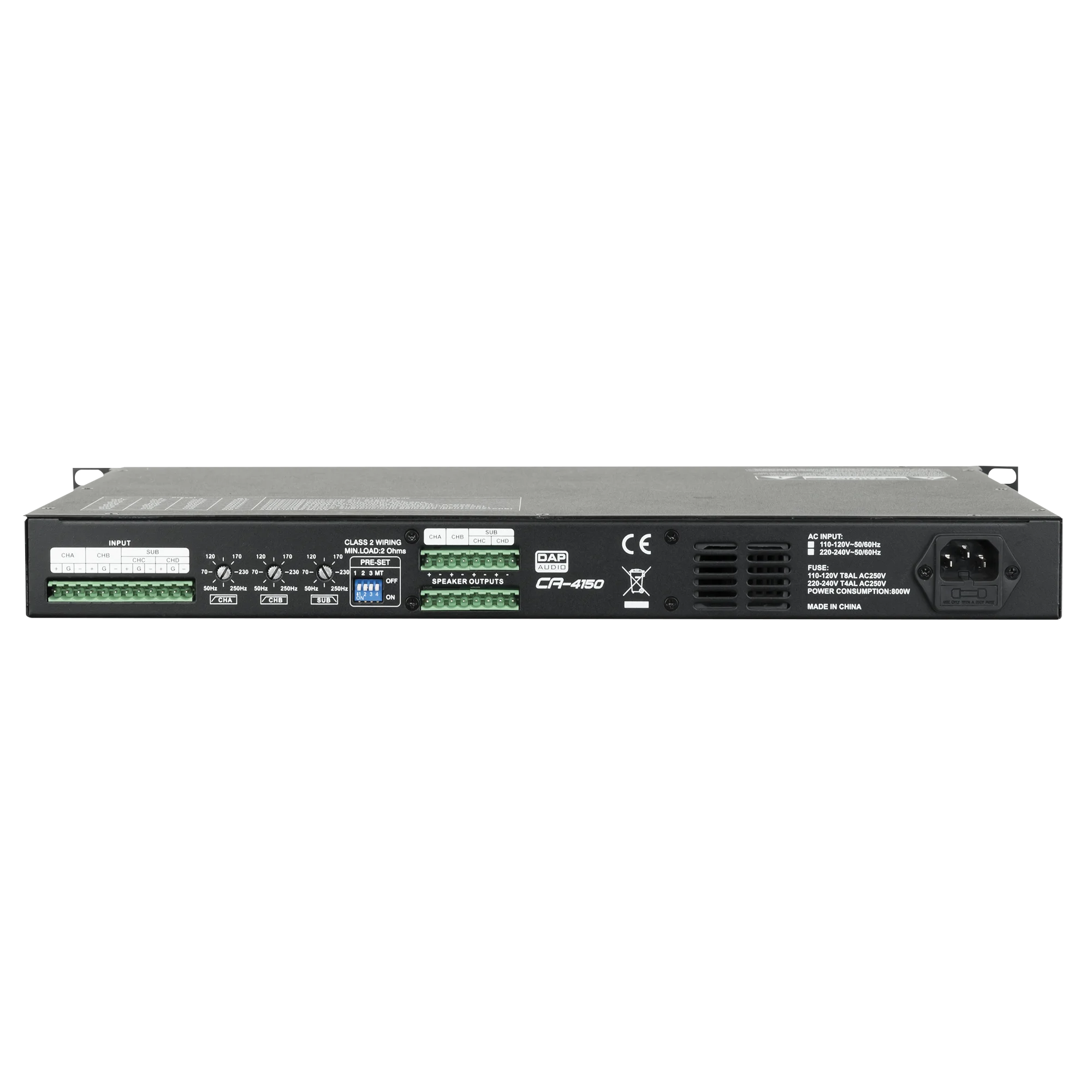 De DAP CA-4150 is een 4x 150 watt versterker met configureerbare ingebouwde Crossover. Uitgerust met klasse D-technologie en SMPS, bezit de CA-4150 alle noodzakelijke functionaliteiten voor de hedendaagse gebruiker.