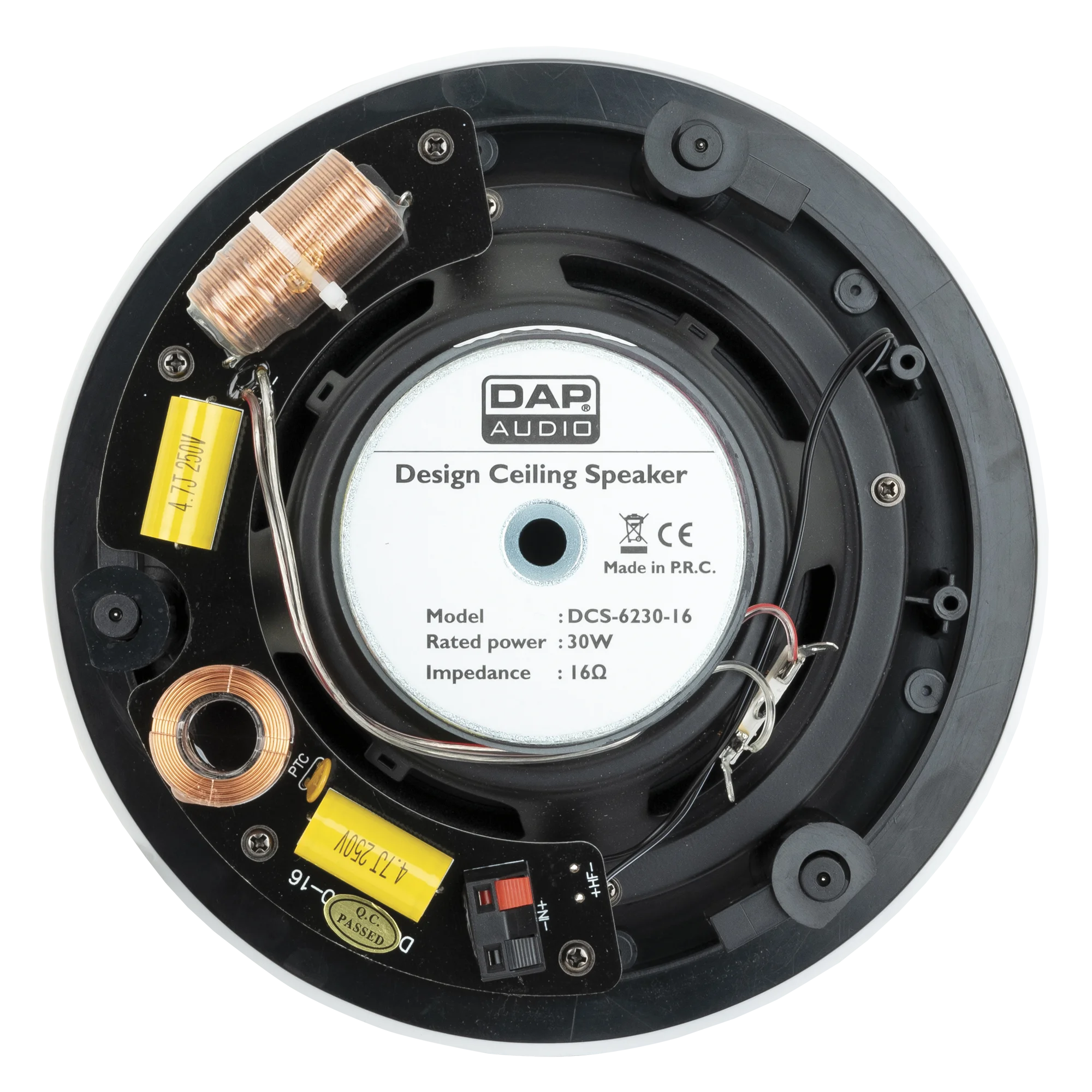 De DAP DCS-16 is een passieve 6 of 8-inch design plafondspeaker met een impedantie van 16 Ohm. Deze witte inbouw plafondluidspreker is ontworpen met bijna geen rand rond het rooster en ook de diepte van het rooster is zeer beperkt. Hierdoor is deze inbouwluidspreker na montage bijna onzichtbaar.