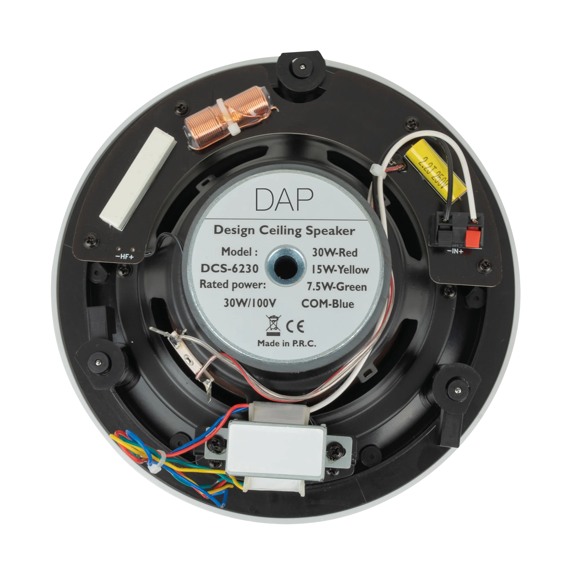 De DAP DCS is een passieve 4,5,6 of 8-inch design plafondspeaker geschikt voor 100V-installaties. Deze witte 20-watt inbouwluidspreker zal onopgemerkt blijven bij montage, omdat hij een kleine roosterdiepte en een ultradunne rand heeft. Het elegante maar sterke rooster wordt op zijn plaats gehouden door krachtige neodymium magneten. Dit maakt montage en demontage zeer eenvoudig maar betrouwbaar genoeg om het rooster op zijn plaats te houden gedurende de volledige levensduur van de luidspreker.