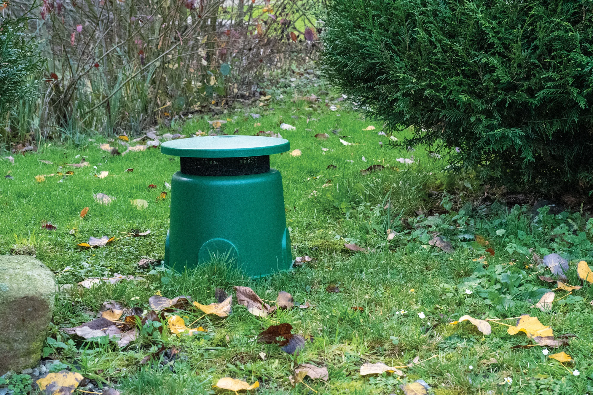 De GS-630 heeft een onopvallend groen ontwerp. Hij is niet alleen geschikt voor tuinen, maar ook voor andere plaatsen, zoals pretparken en terrassen.