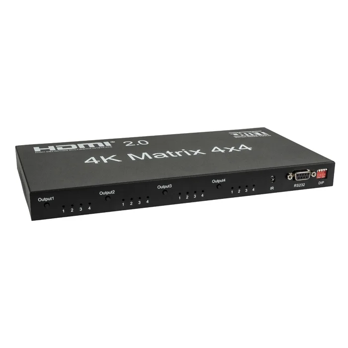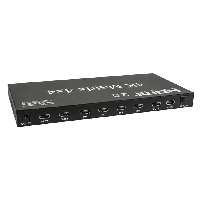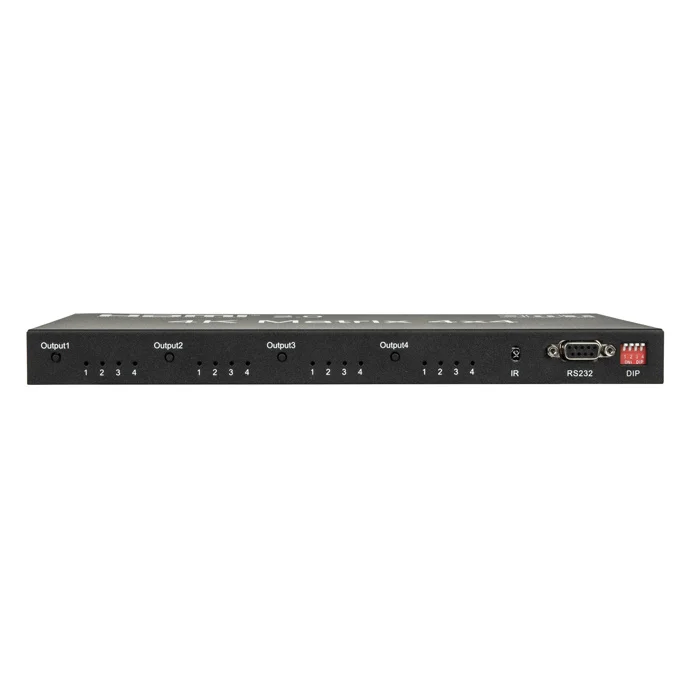 De DMT VT101 - HDMI Matrix Switcher 4x4 is een combinatie van een schakelaar en een splitter, waardoor meerdere HDMI-apparaten op meerdere beeldschermen/ televisies et cetera kunnen worden aangesloten. Je kunt hem handmatig besturen of met behulp van een meegeleverde afstandsbediening. Hiermee is dit apparaat gemakkelijk te bedienen. Een HDMI-schakelaar of - splitter kan daarnaast nooit dezelfde functionaliteit of flexibiliteit bieden. De DMT VT101 ondersteunt resoluties tot 3840 x 2160 p bij 60 Hz. Indicatoren aan de voorkant van het apparaat geven de huidige routeringsstatus weer voor een duidelijk overzicht van je uitgangssignalen.